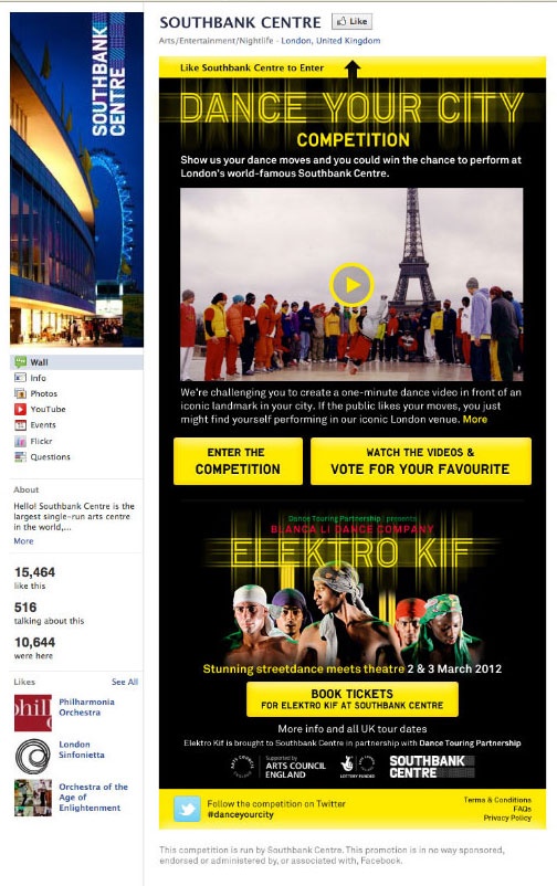 Produced a Facebook app to host a competition for street dance groups all over the UK to compete for the chance to dance with Elektro Kif. Entrants just pasted the YouTube URL in and the public could vote for their three favourite videos.